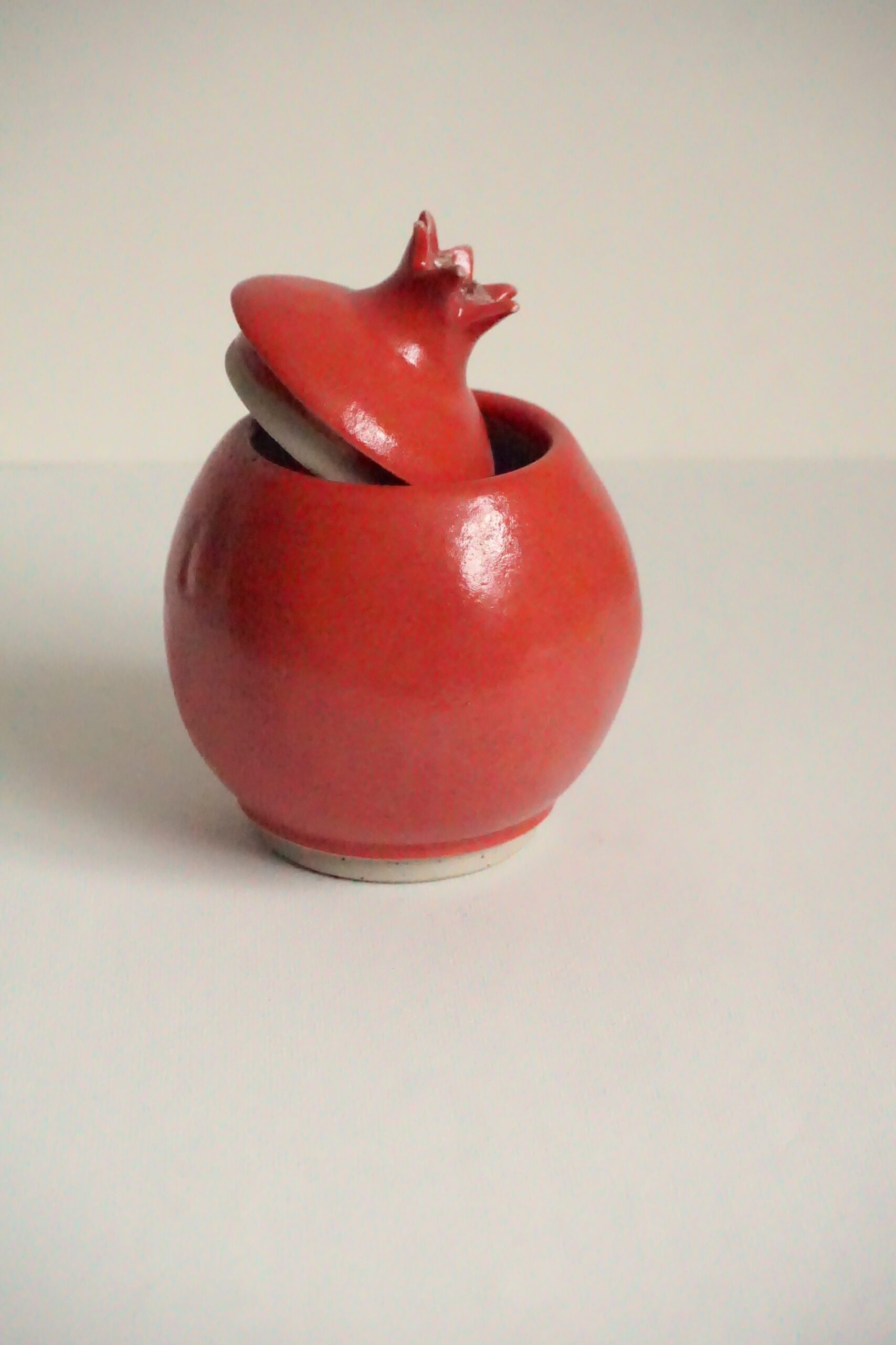 Mit dieser Granatapfel Dose, aus hellem Steinzeugton handgedreht und liebevoll handbemalt, holst du dir nicht nur ein praktisches Aufbewahrungsobjekt, sondern auch ein kunstvolles Dekorationsstück nach Hause.