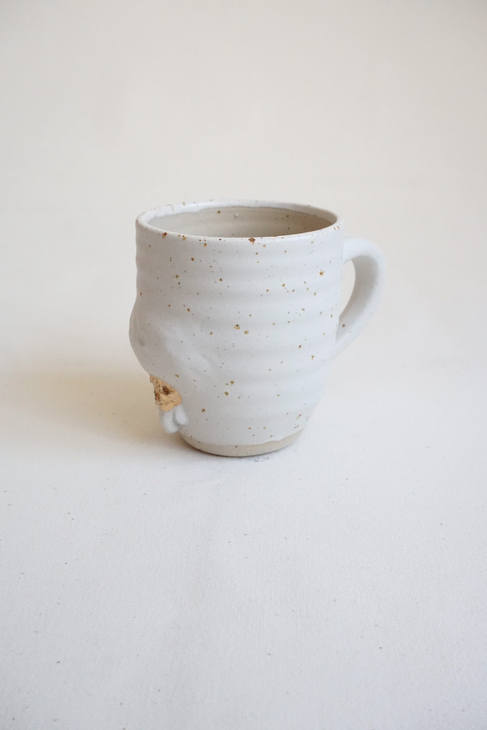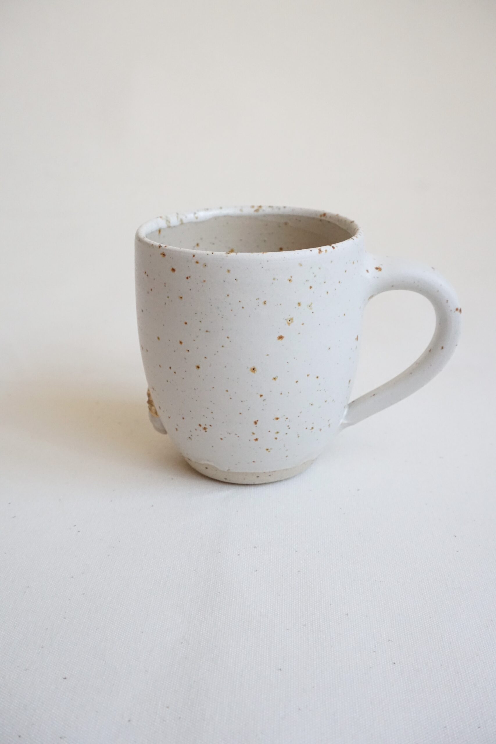 Jede Tasse wird von Hand auf der Töpferscheibe aus recyceltem Ton gedreht – ein nachhaltiger Prozess, der den Tassen ihre einzigartige, charmante Optik verleiht. Der recycelte Ton, der dabei entsteht, ist nicht nur umweltfreundlich, sondern sorgt auch für unvorhersehbare, wunderschöne Sprenkelungen, die die Tassen zu wahren Unikaten machen. Diese „Sommersprossen“ verleihen jedem Stück eine besondere Note.
